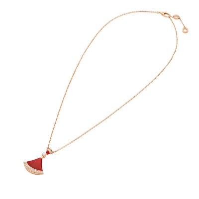 BVLGARI DIVAS' DREAM 18K Золотое розовое золото с красным нефритовым сердцем и бриллиантовым ожерельем 356437