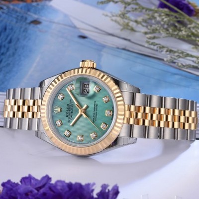 Rolex-Ladies Datejust Series 279173-63343 Green Strip 10 Diamond Женские автоматические механические часы